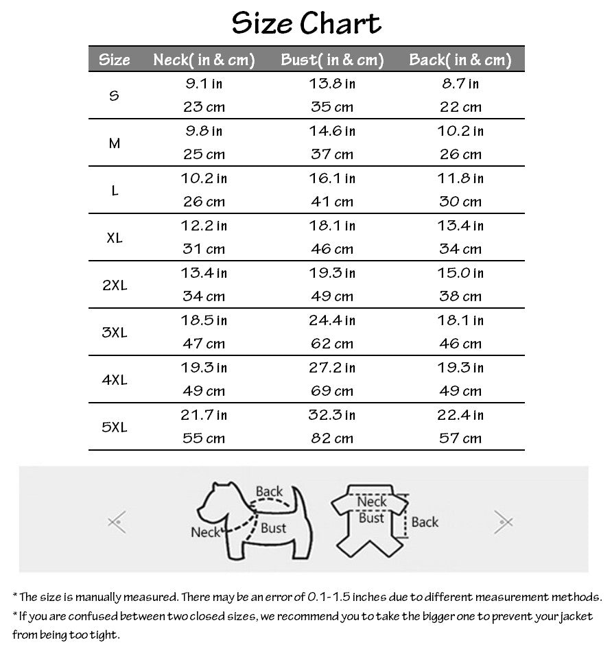 • Notice - This dog vest clothes will be a armor for dogs in the fall and winter outdoors!waterproof, windproof, warmth, safety reflective stripes and multifunctional make it become an essential equipment for dogs in winter! in order to fit your dog perfectly, please measure your dogs size before your purchase, refer them to the size chart.